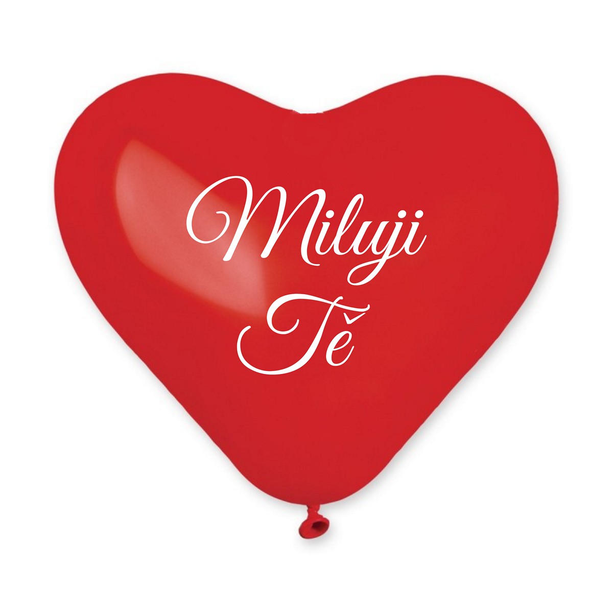 Balení 100 ks nafukovacích balónků obsahuje malá nafukovací srdíčka o průměru 25cm v červené barvě s bílým potiskem "Miluji Tě".