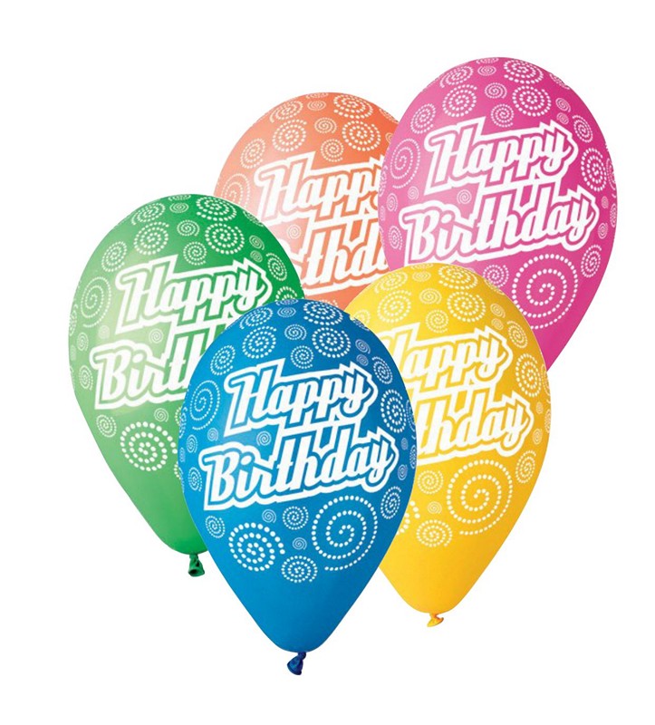 100ks pastelových balónků v barevném mixu s celoplošným potiskem "happy birthday" o průměru 30cm.