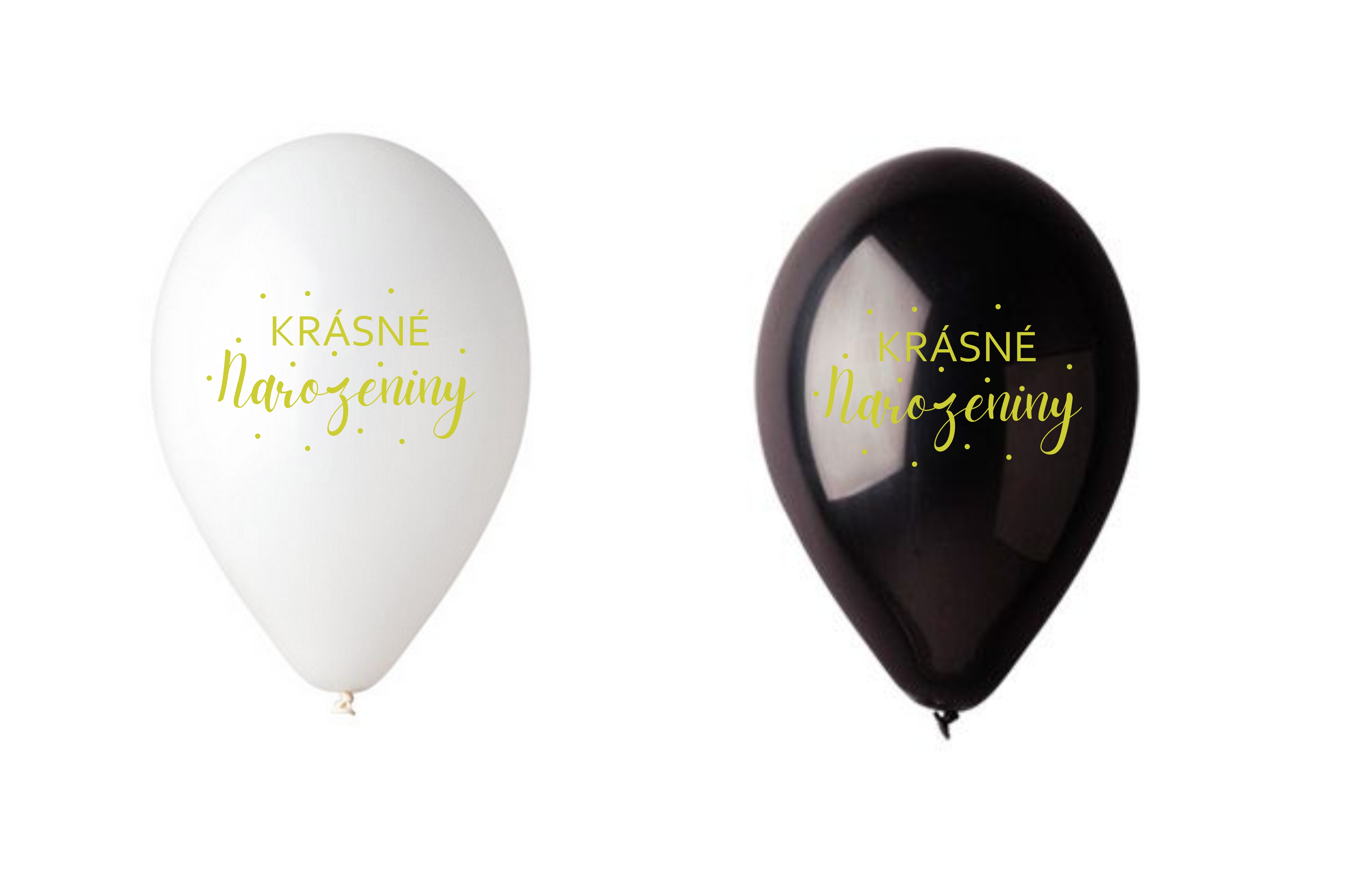 50ks černých a bílých balónků s potiskem KRÁSNÉ NAROZENINY o průměru 30cm.