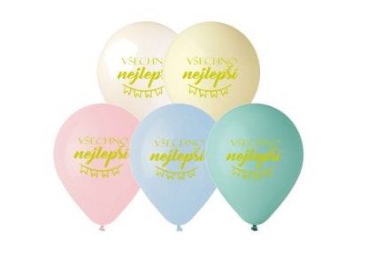 50ks barvy marshmallow balónků s potiskem VŠECHNO NEJLEPŠÍ o průměru 30cm.