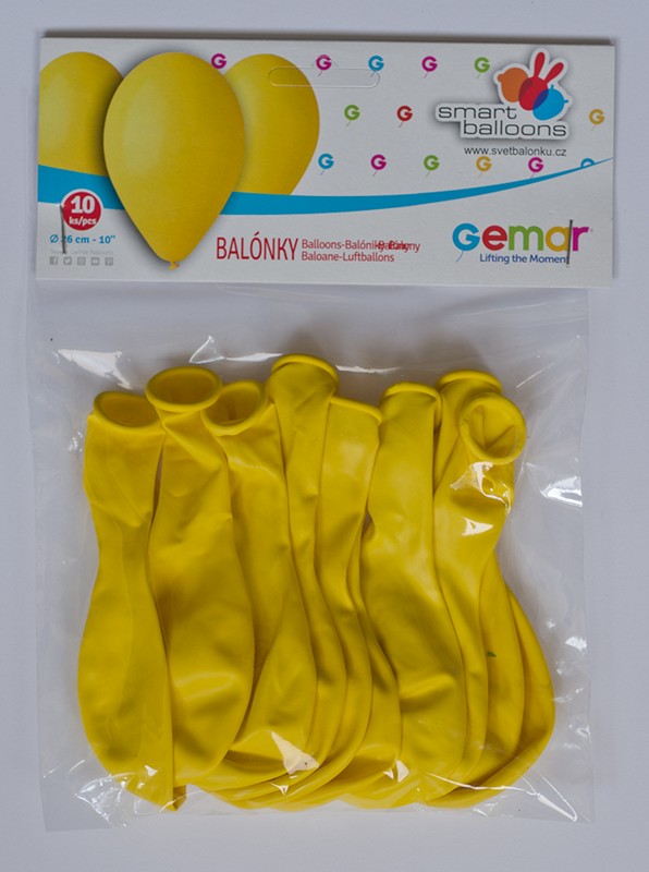 Maloobchodní balení žlutých balónků o průměru 26cm - 10ks.