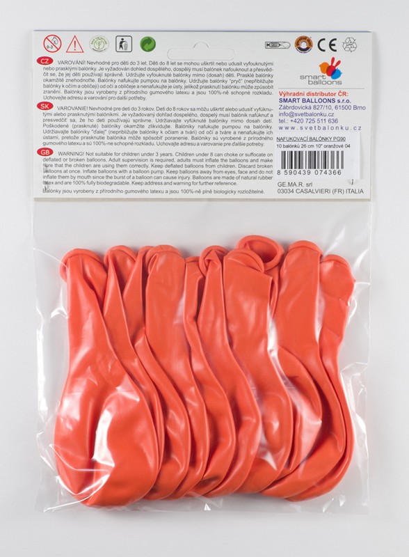 Maloobchodní balení oranžových balónků o průměru 26cm - 10ks.