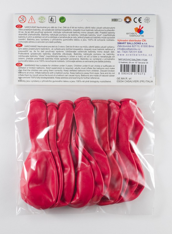 Maloobchodní balení červených balónků o průměru 26cm - 10ks.