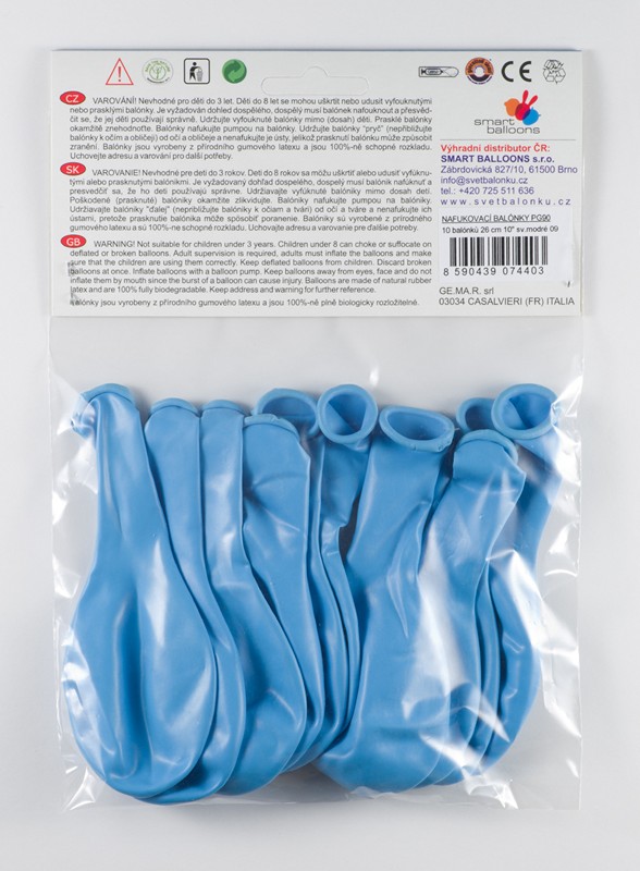 Maloobchodní balení světle modrých balónků o průměru 26cm - 10ks.