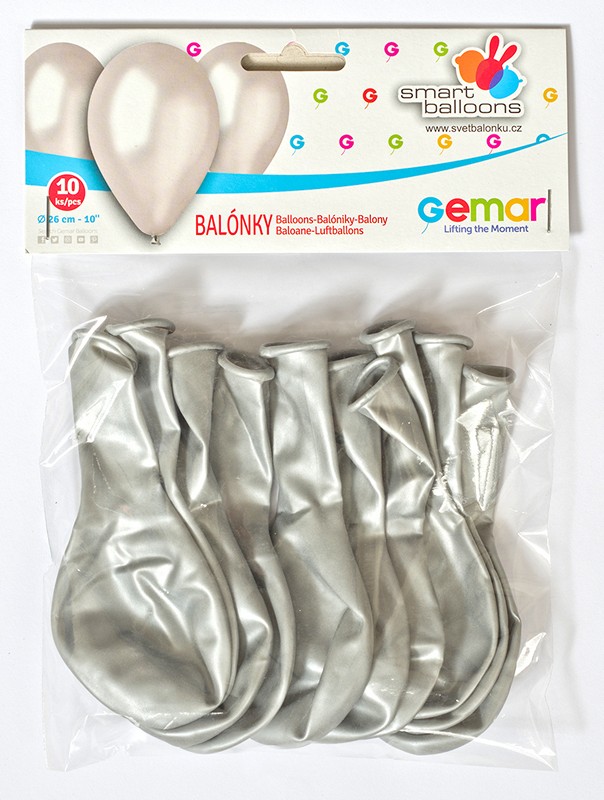 Maloobchodní balení metalických stříbrných balónků o průměru 26cm - 10ks.