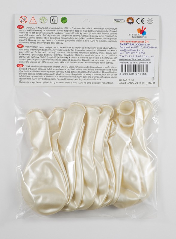 Maloobchodní balení metalických perleťových balónků o průměru 26cm - 10ks.