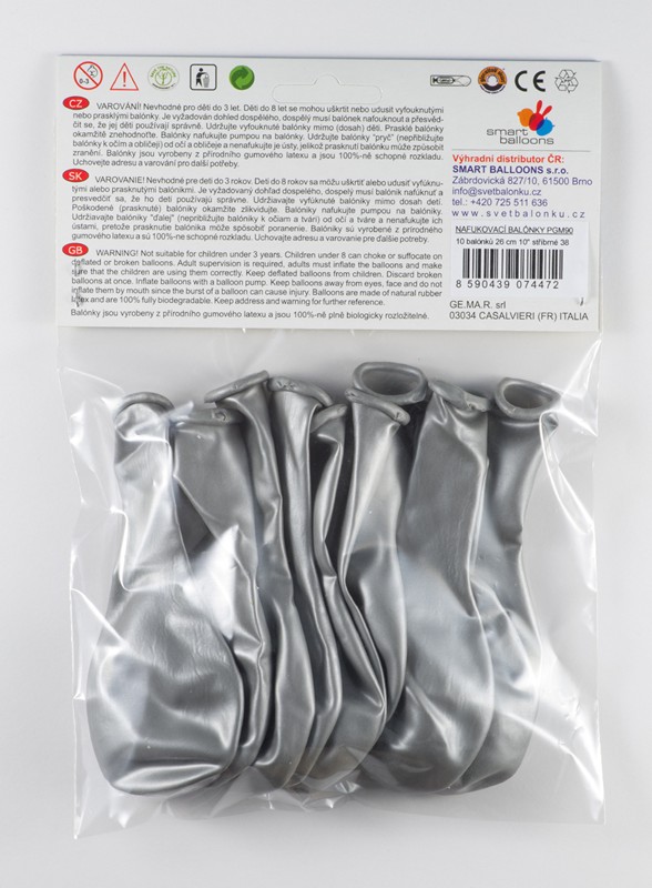 Maloobchodní balení metalických stříbrných balónků o průměru 26cm - 10ks.