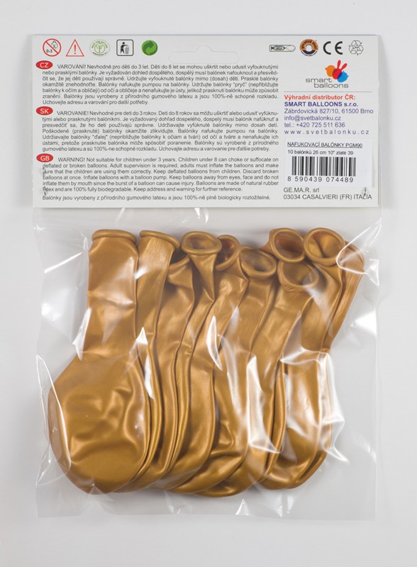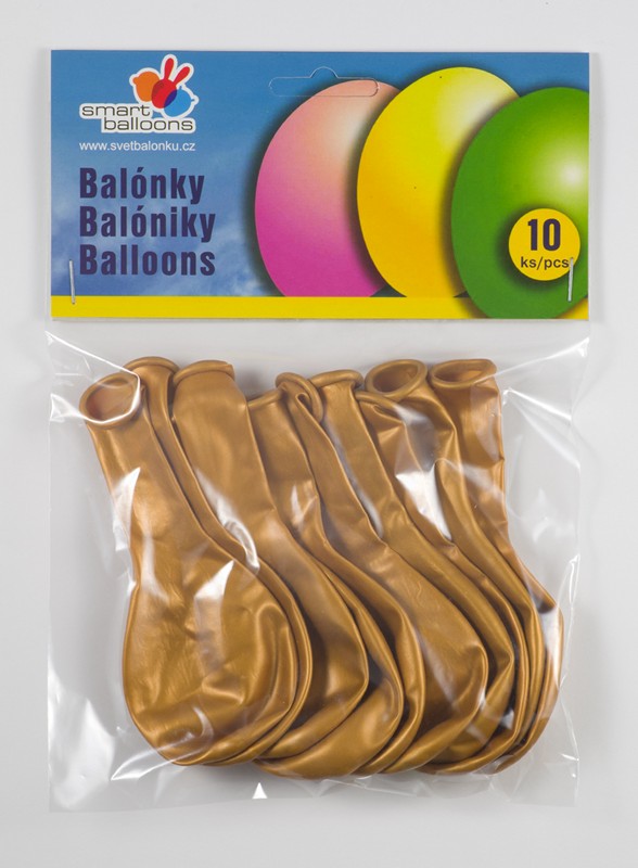 Maloobchodní balení metalických zlatých balónků o průměru 26cm - 10ks.