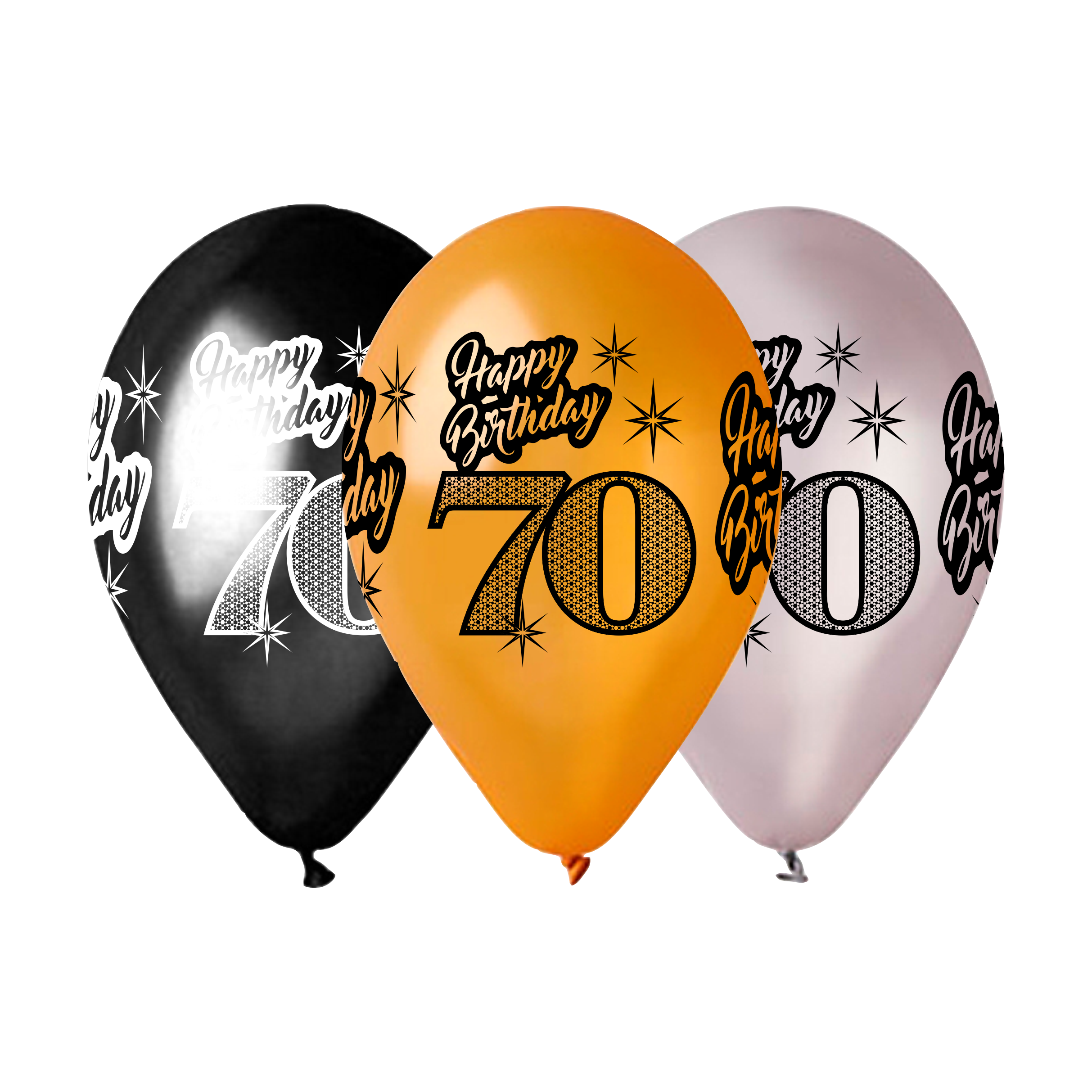 Narozeninové balónky s potiskem Happy Birthday k oslavě 70tých narozenin, průměr 33cm, 5ks v balení.