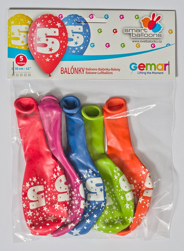 GS110-N5 | Balónek pastel 30 cm číslo 5 potisk (100ks/bal) |