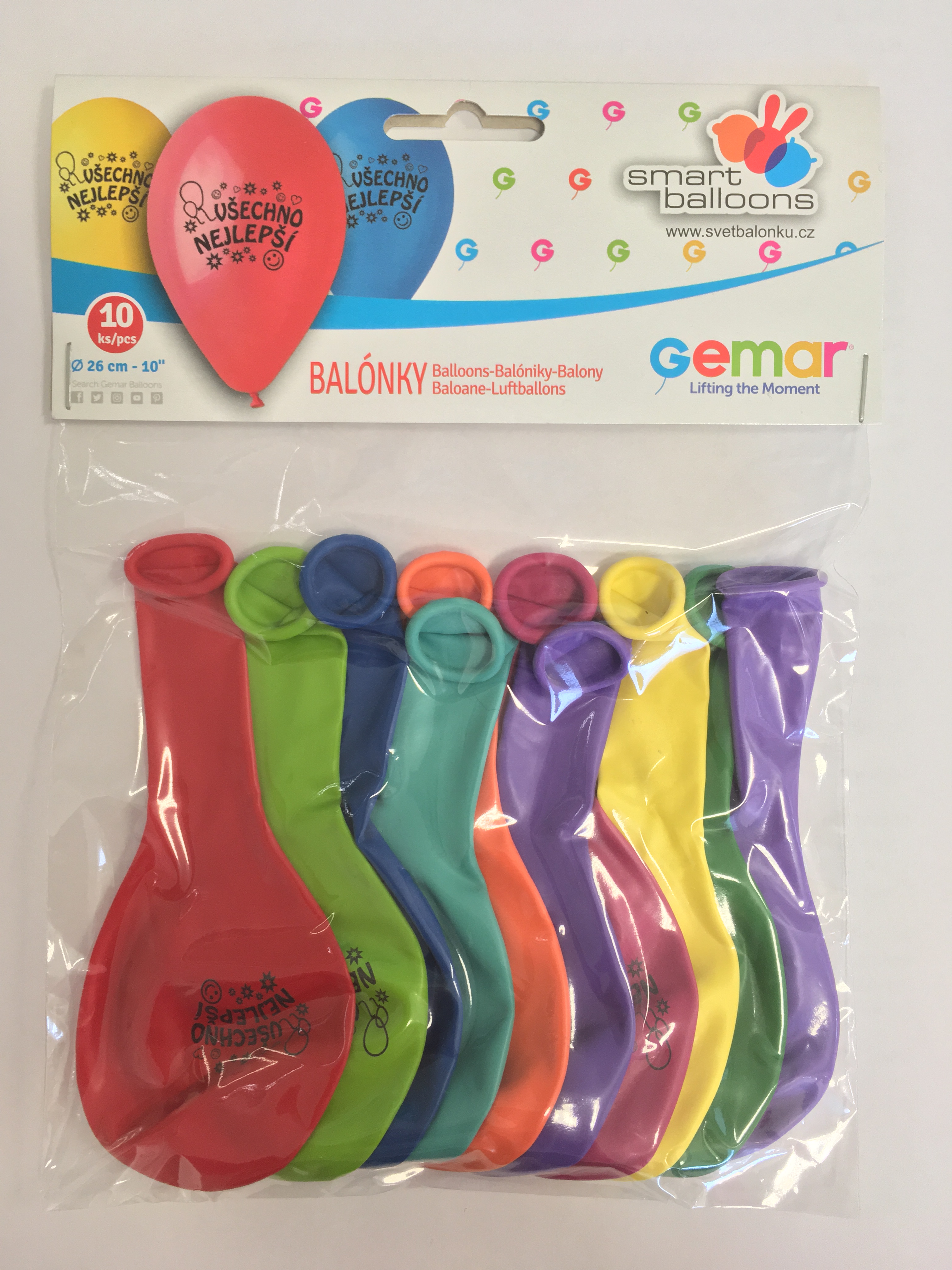 Nafukovací balónky s nápisem "VŠECHNO NEJLEPŠÍ" jsou vhodným doplňkem narozeninového dárku.
