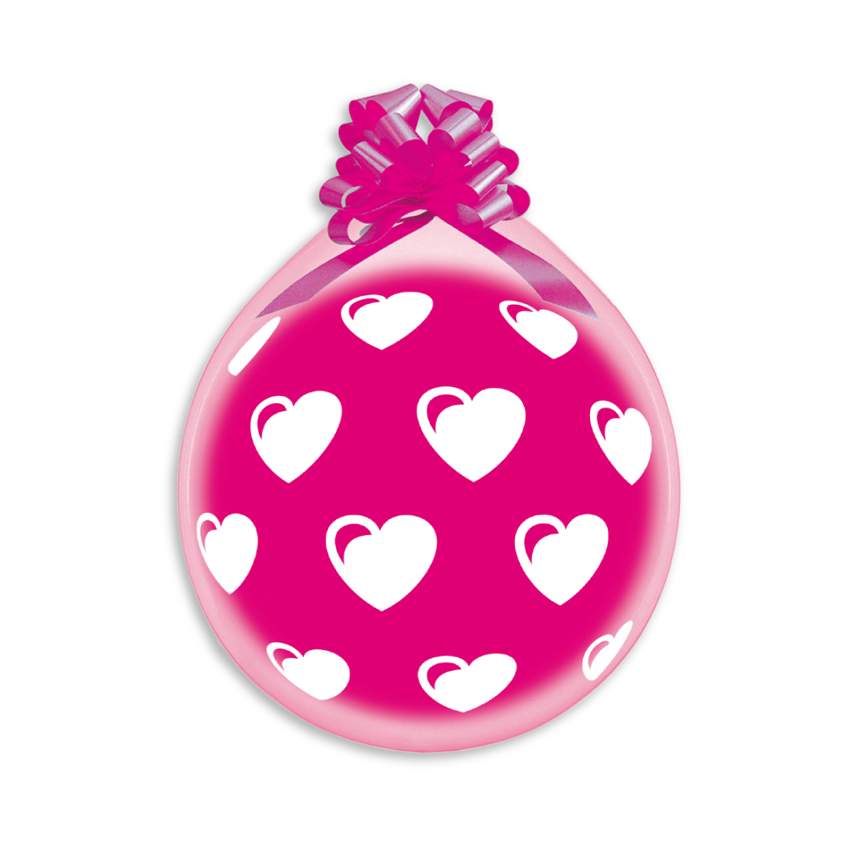 Balónky pro originální balení dárků jsou po nafouknutí průhledné (bezbarvé) s bílým potiskem srdíček.