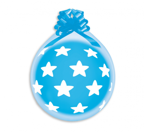 Balónky pro originální balení dárků jsou po nafouknutí průhledné (bezbarvé) s bílým potiskem hvězd.
