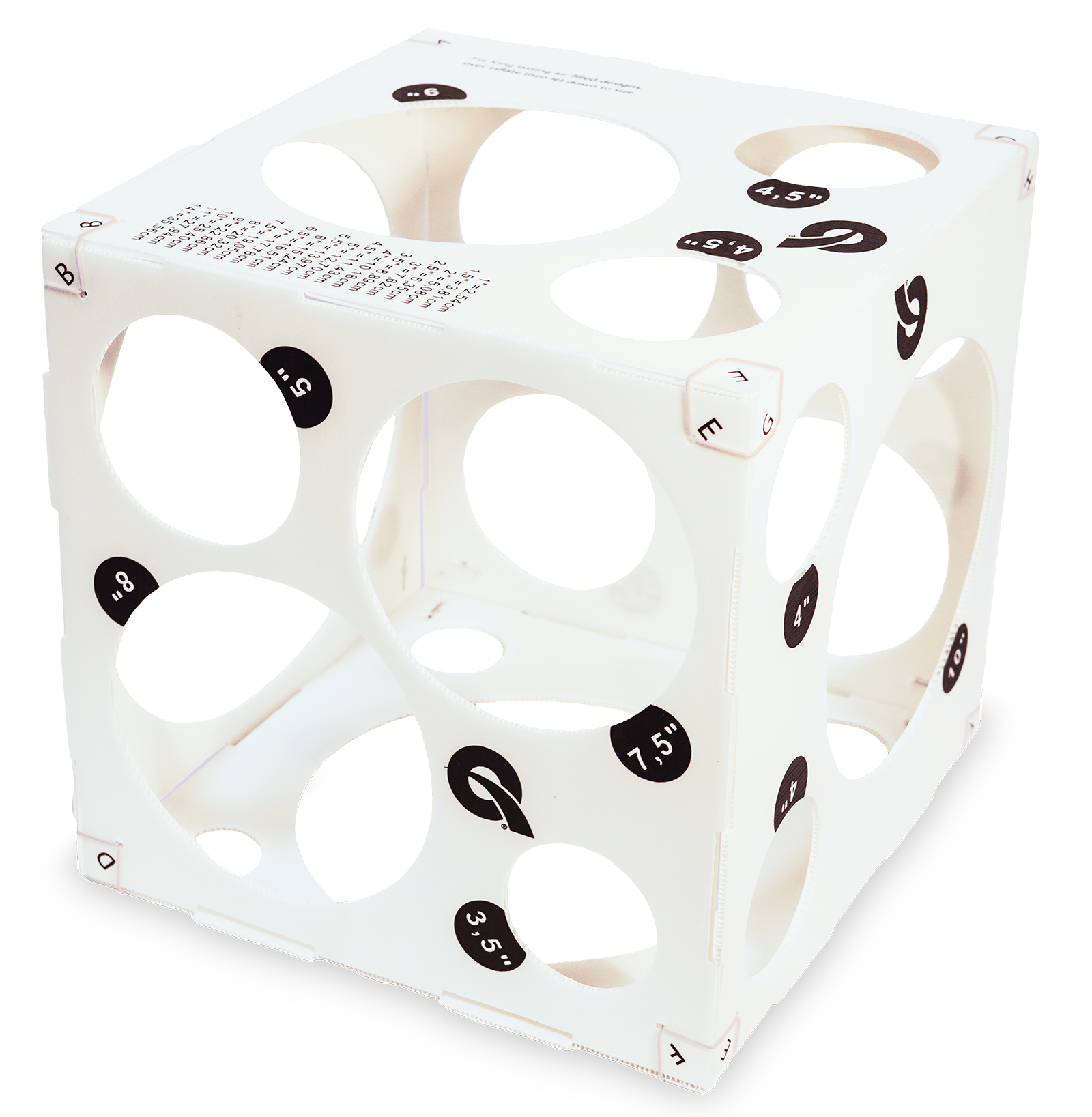 Příslušenství používané při nafukování balónků, slouží k určení zda jsou nafouknuté balónky v požadované velikosti. Rozměry v cm i v palcích.