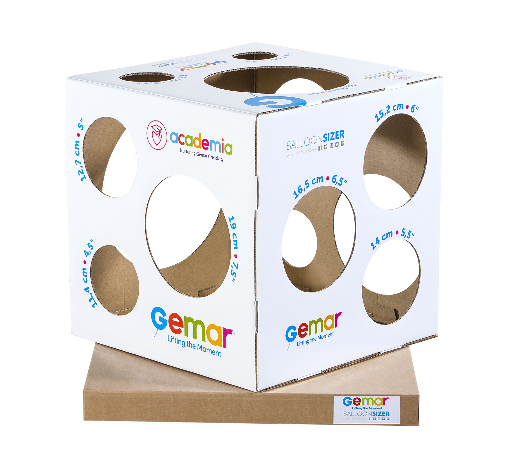 Papírový sizer od firmy Gemar k dokonalému měření velikostí balónků pro dekorace.