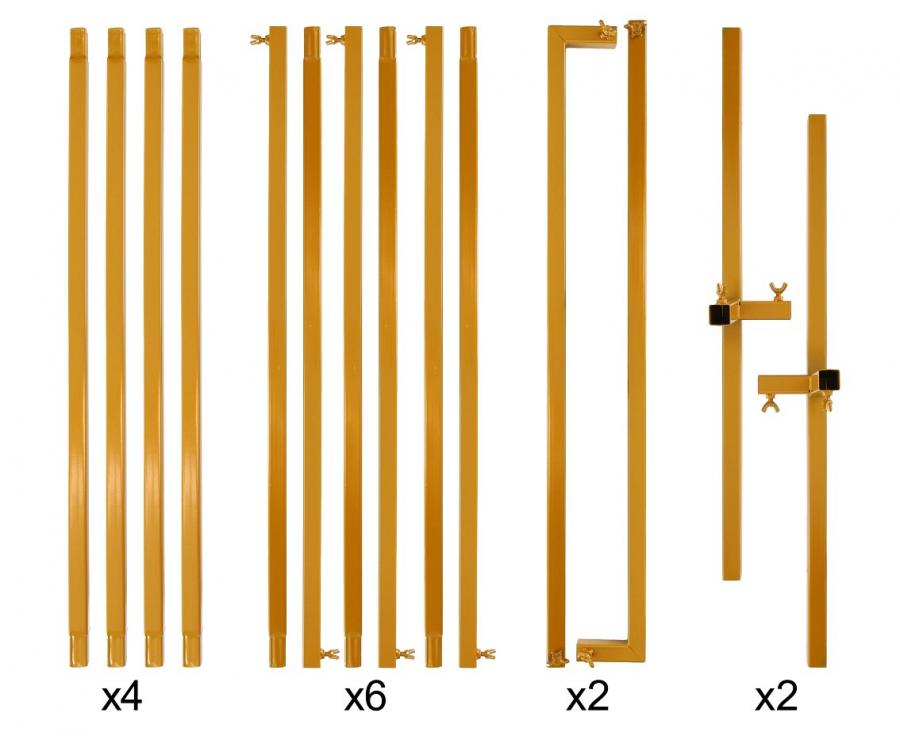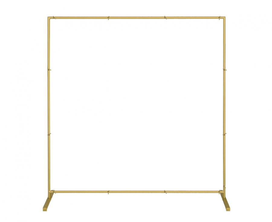 Samovolně stojící stojan ve tvaru čtverce, vyroben z kovu ve zlaté barvě. Průměr kruhu po sestavení je cca 2,1 metru.