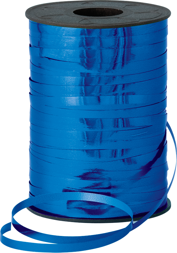 Stuha na heliové balónky a balónkové dekorace 250m – MODRÁ METALICKÁ.