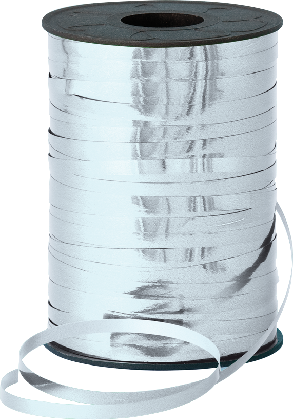 Stuha na heliové balónky a balónkové dekorace 250m – STŘÍBRNÁ METALICKÁ.