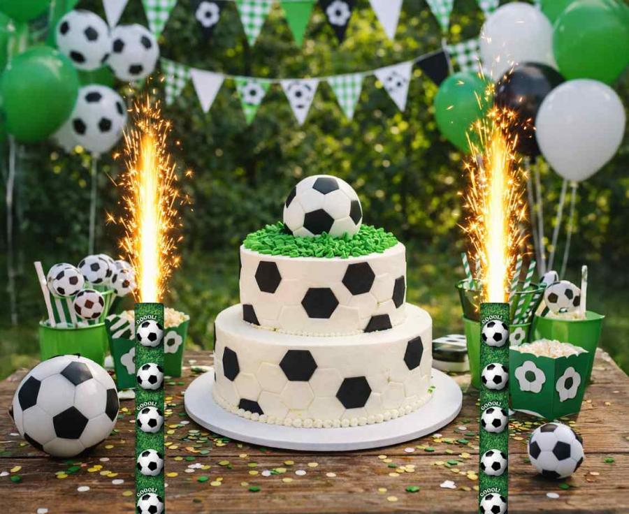 Fontána s motivem fotbal na dort dokonale nahradí běžné svíčky.