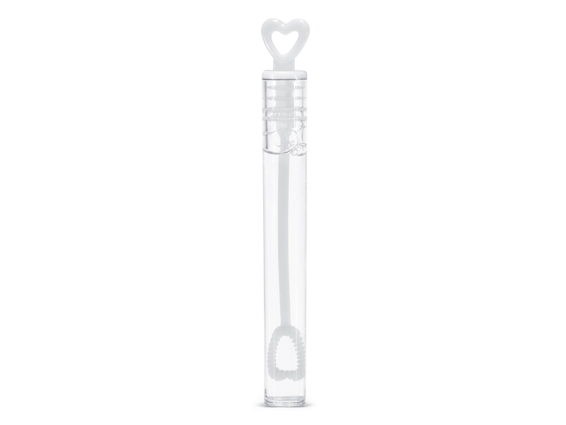 Bublifuk v bílé barvě se srdíčkem, vhodný na svatby a oslavy.