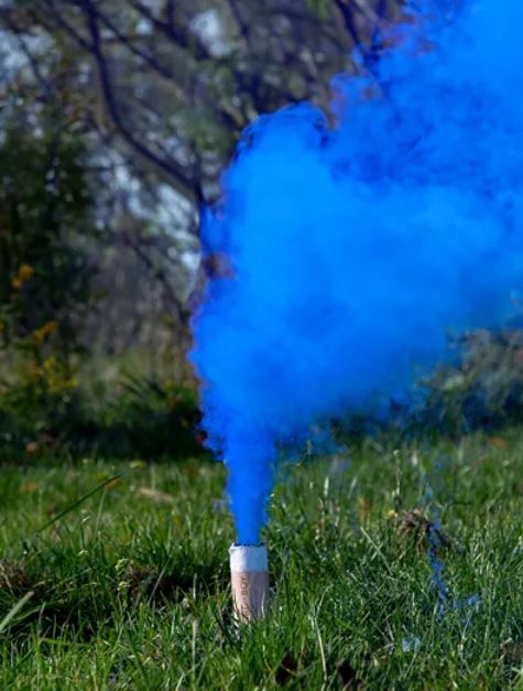Dýmovnice s modrým práškem. Délka cca 22,5cm.