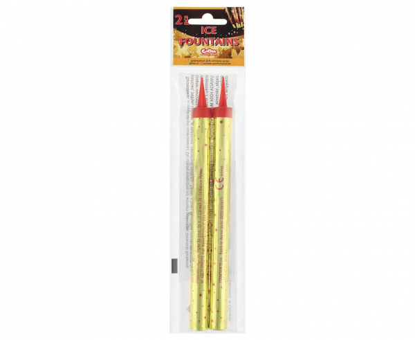 Fontána má ochraný plastový hrot. Pro bezpečné použití zabodněte fontánu hrotem do dortu, na opačném konci zapalte a ihned se vzdalte alespoň na 1m.