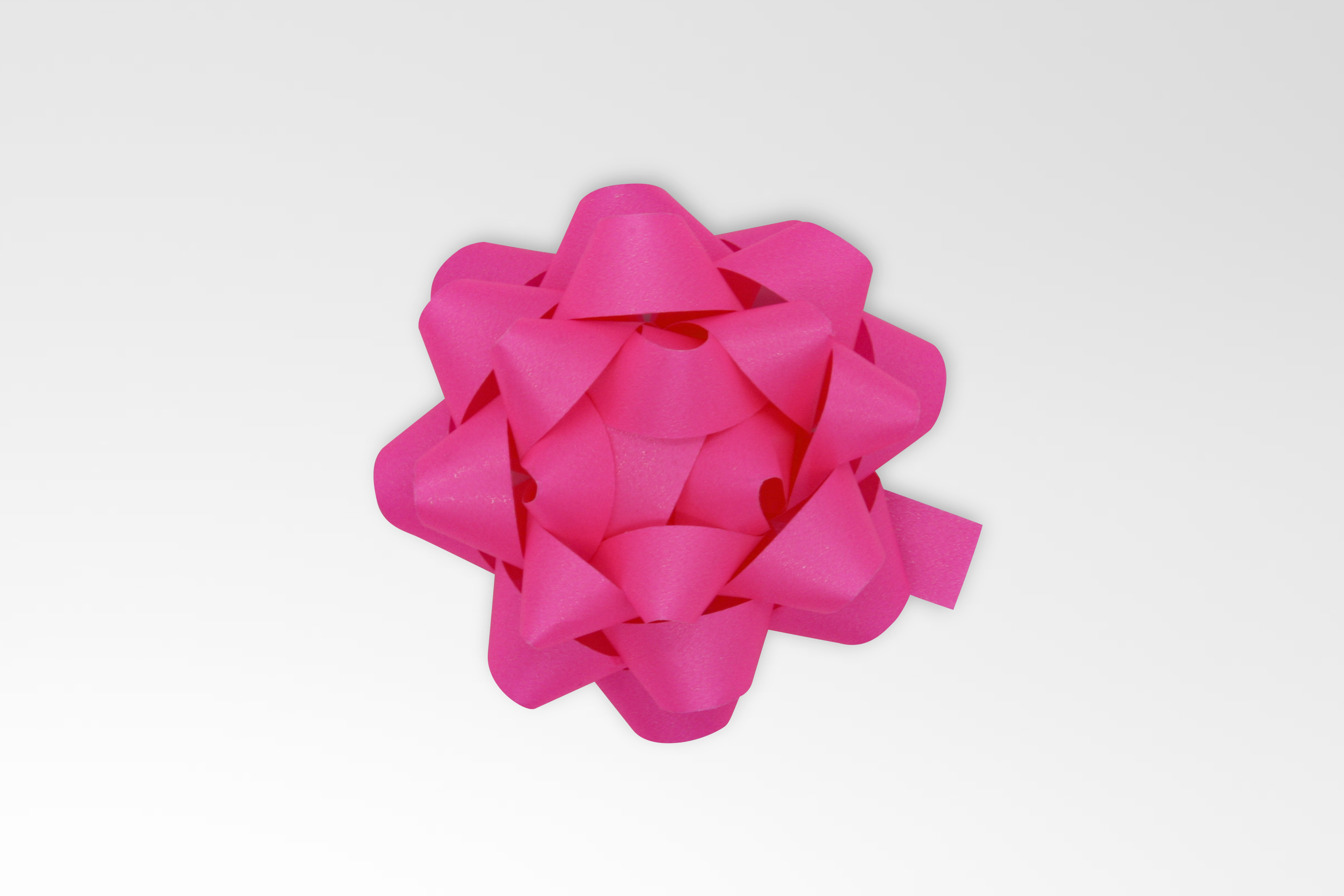 Ozdobná papírová rozeta na dárky v barvě růžové.