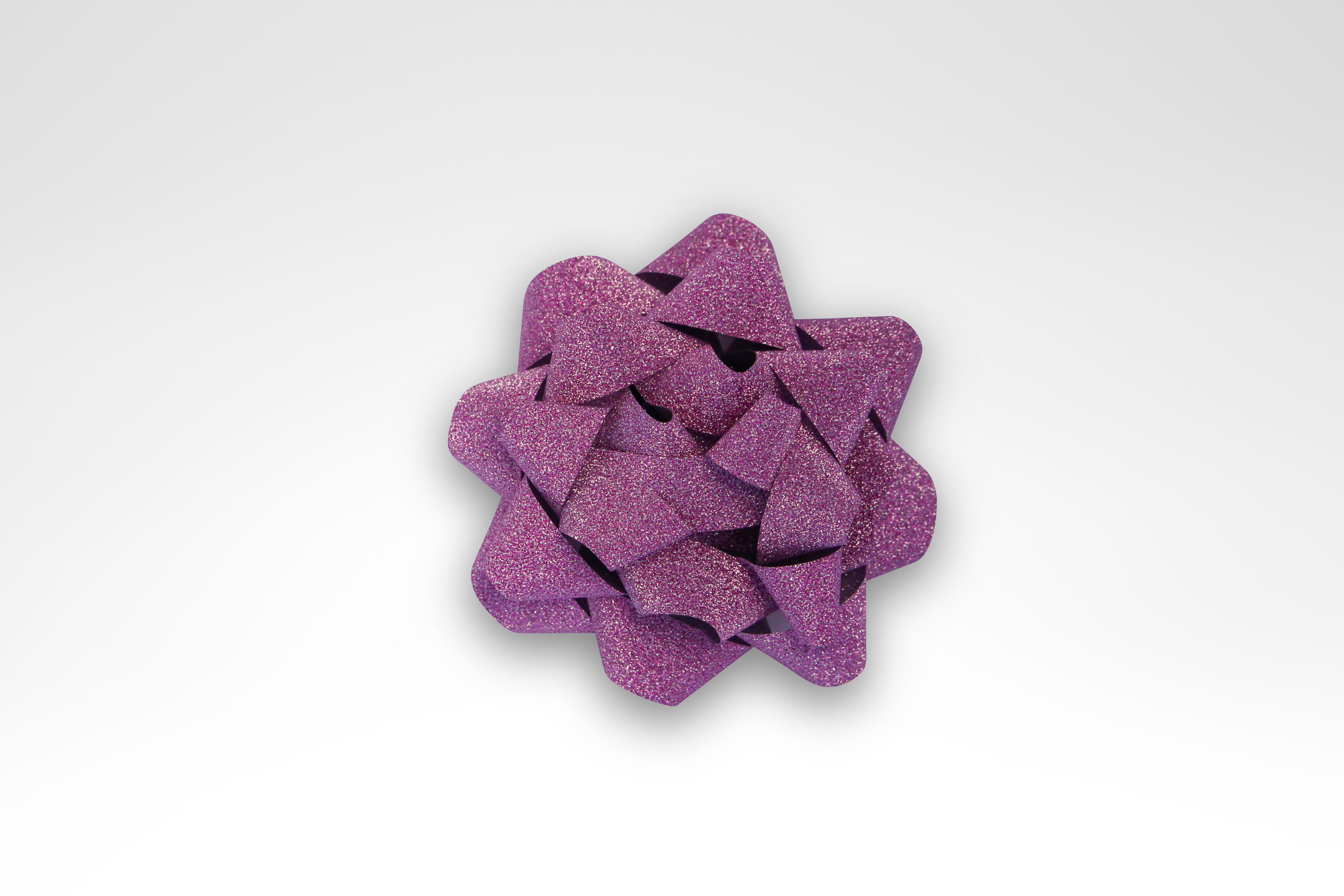Ozdobná papírová rozeta na dárky v barvě růžové.