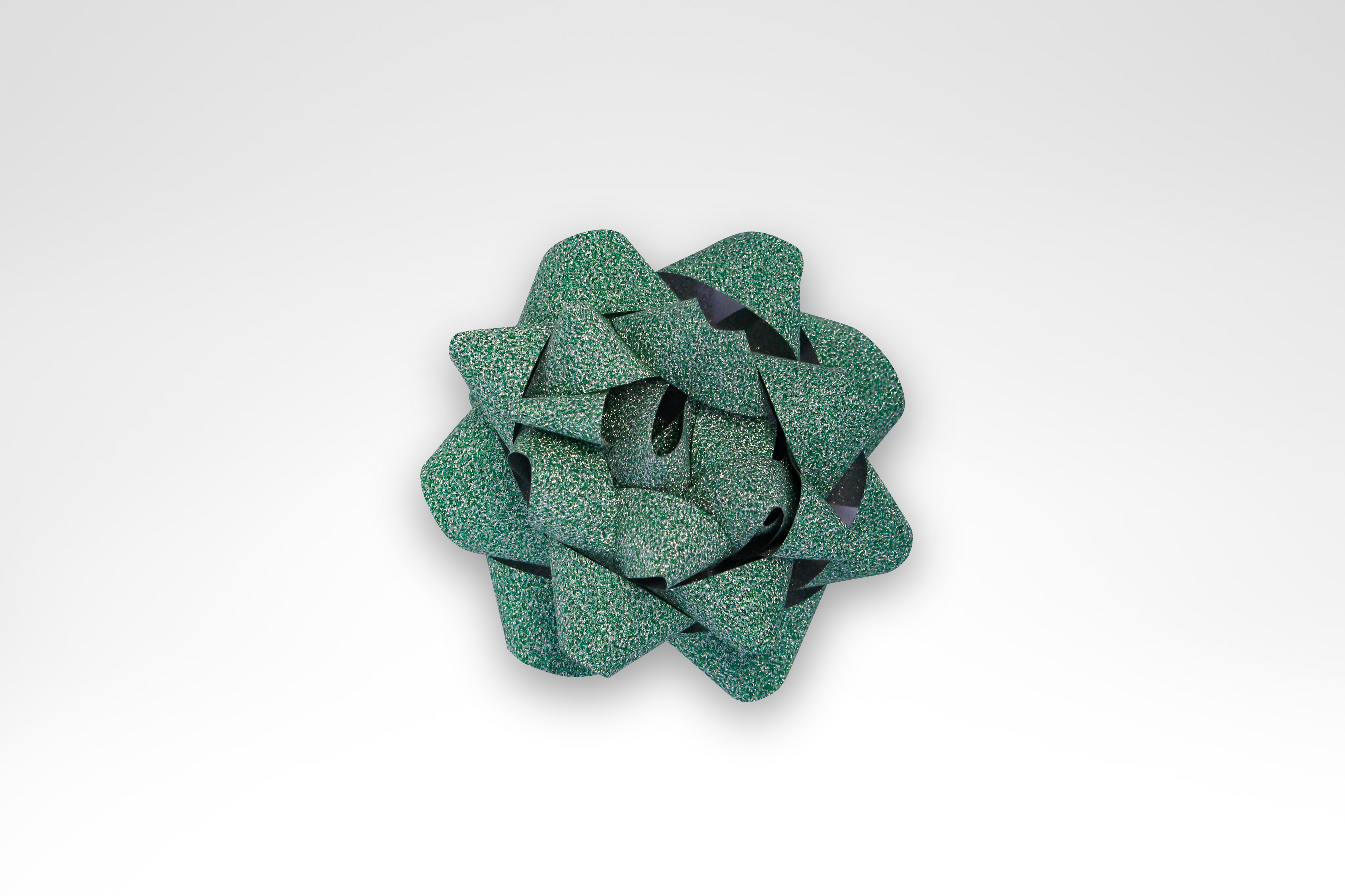 Ozdobná papírová rozeta na dárky v barvě zelené.