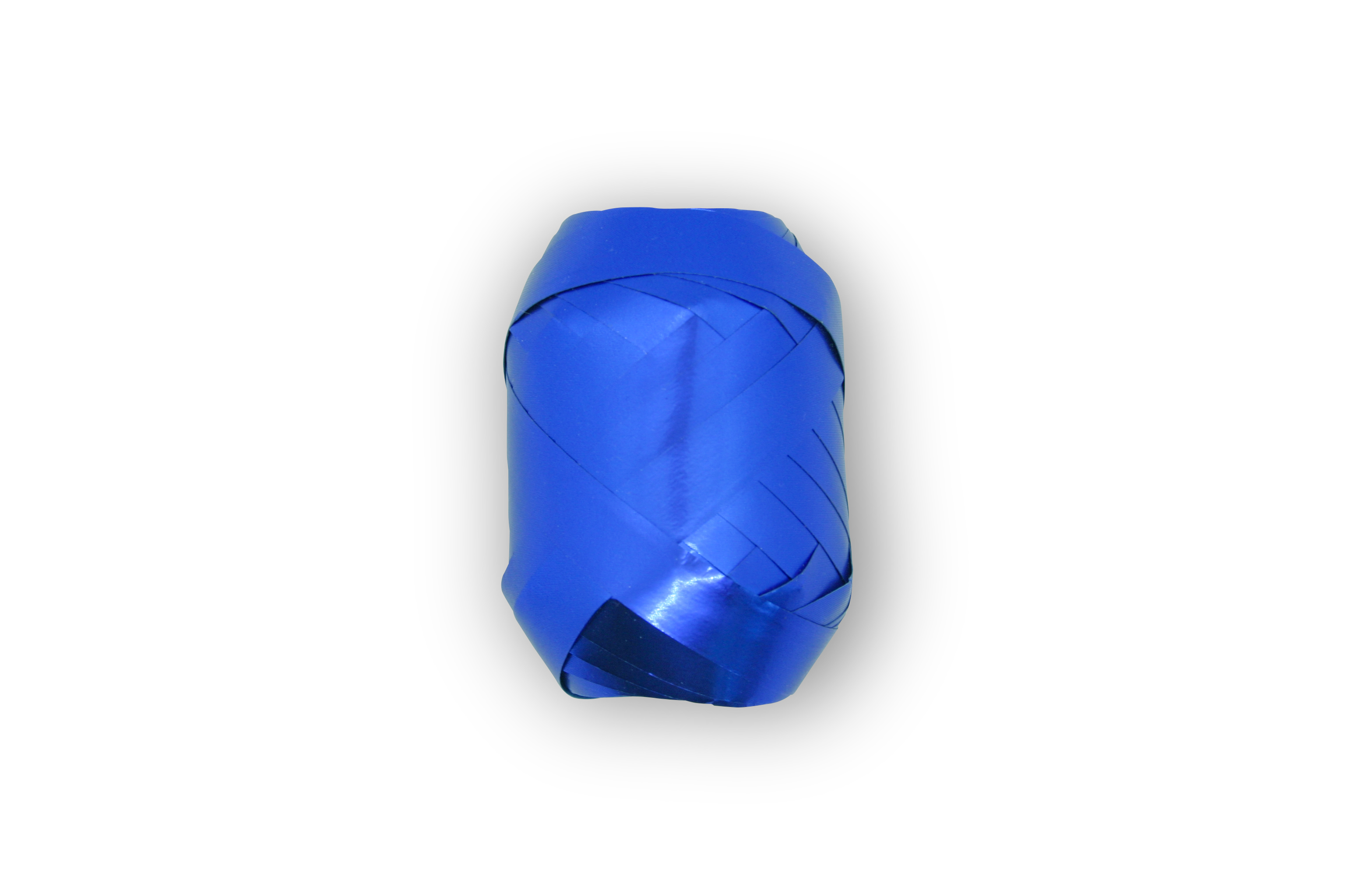 Metalická stuha, která slouží jako dekorace na dárky v barvě modré.