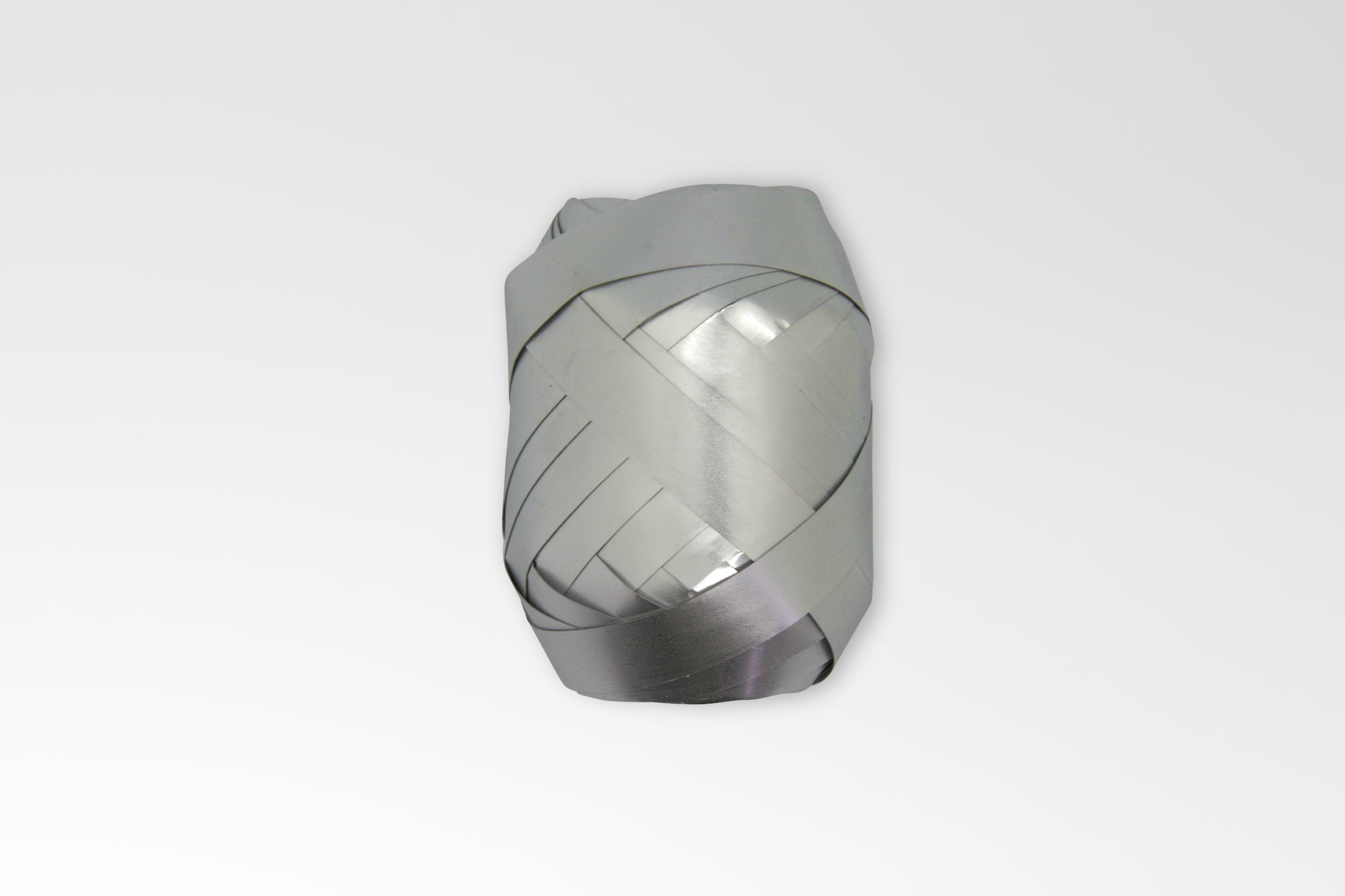 Metalická stuha, která slouží jako dekorace na dárky v barvě stříbrné.