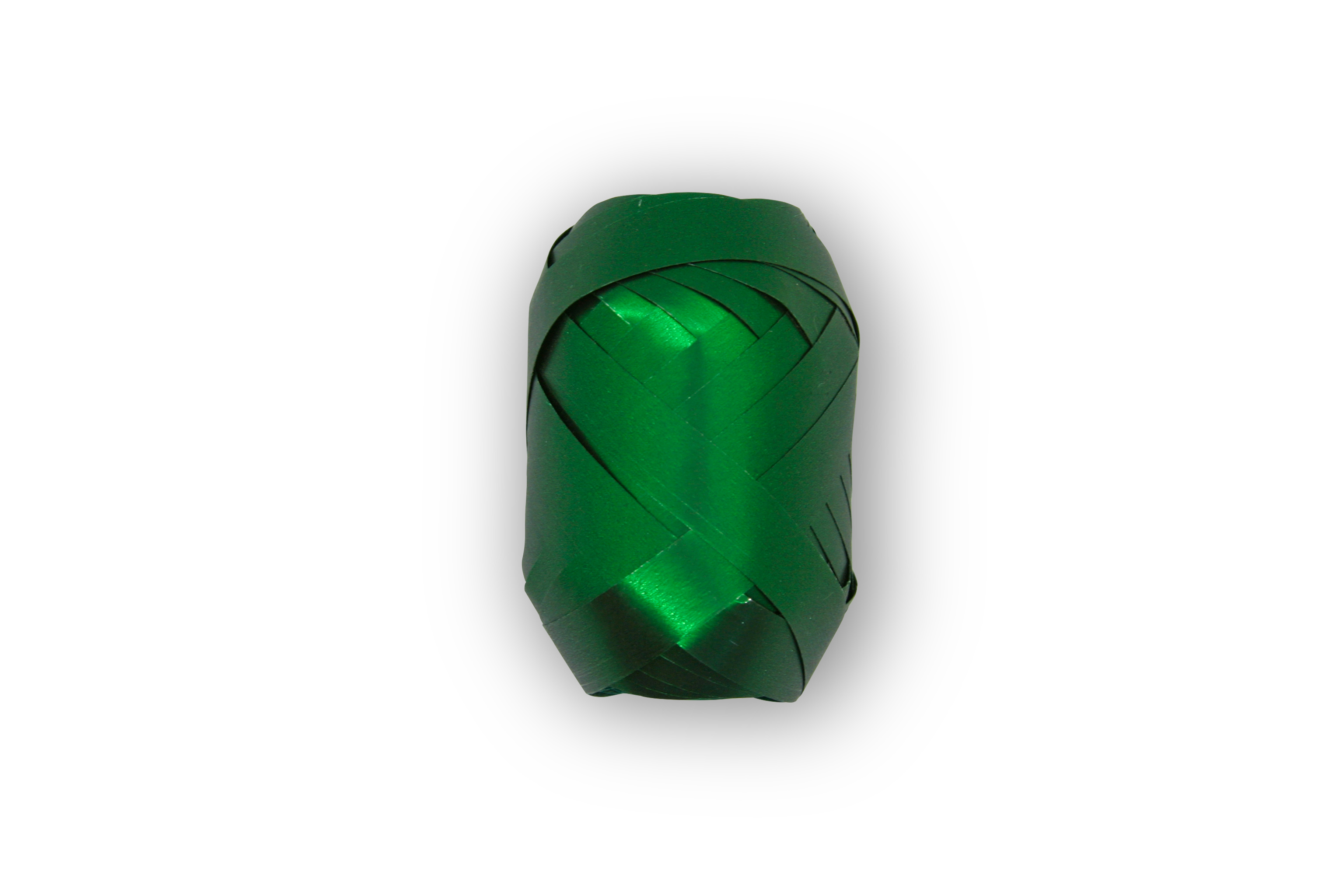 Metalická stuha, která slouží jako dekorace na dárky v barvě zelené.