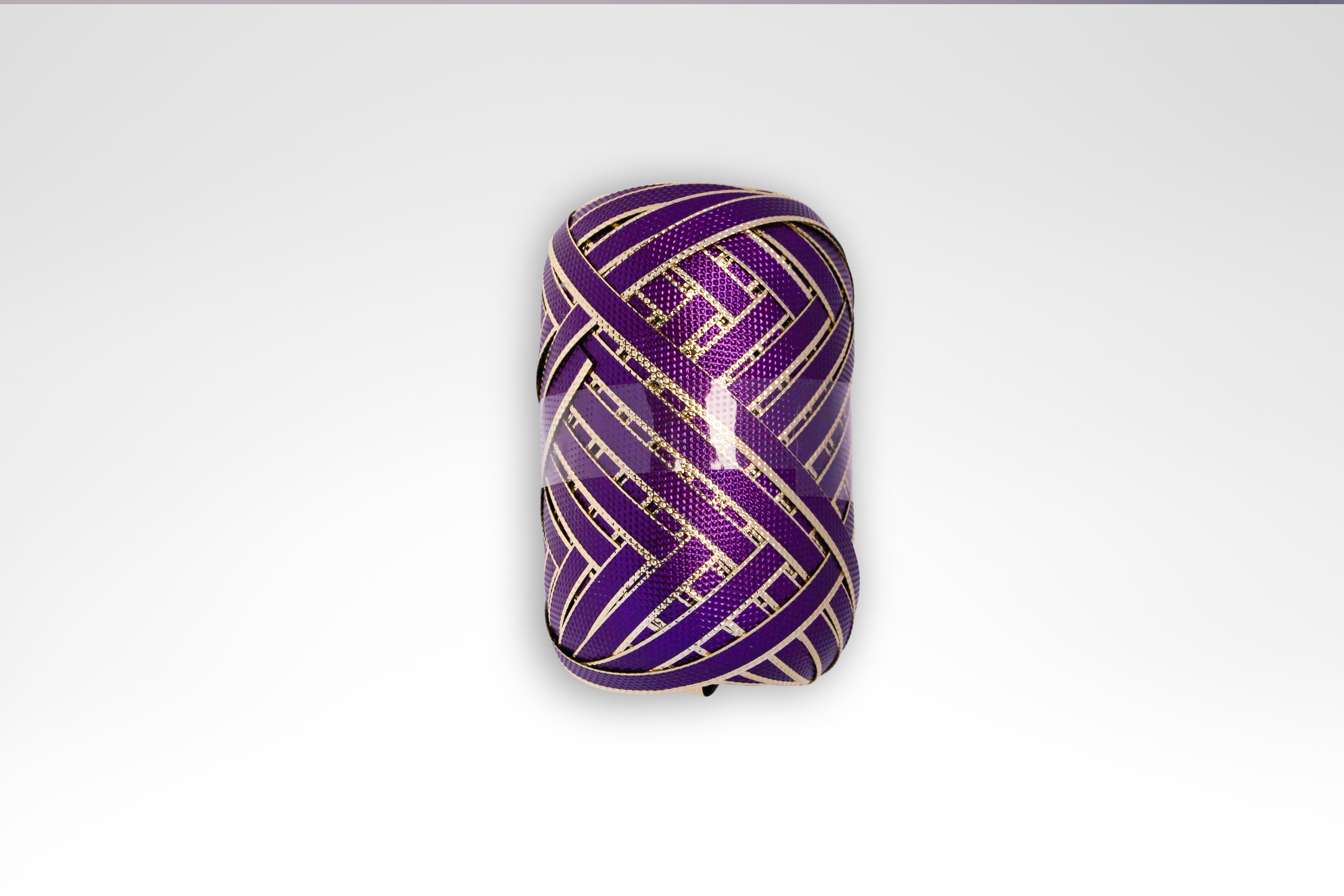 Ozdobná, lesklá stuha, kterou spevníme zabalené dárky v barvě fialové se zlatým okrajem.
