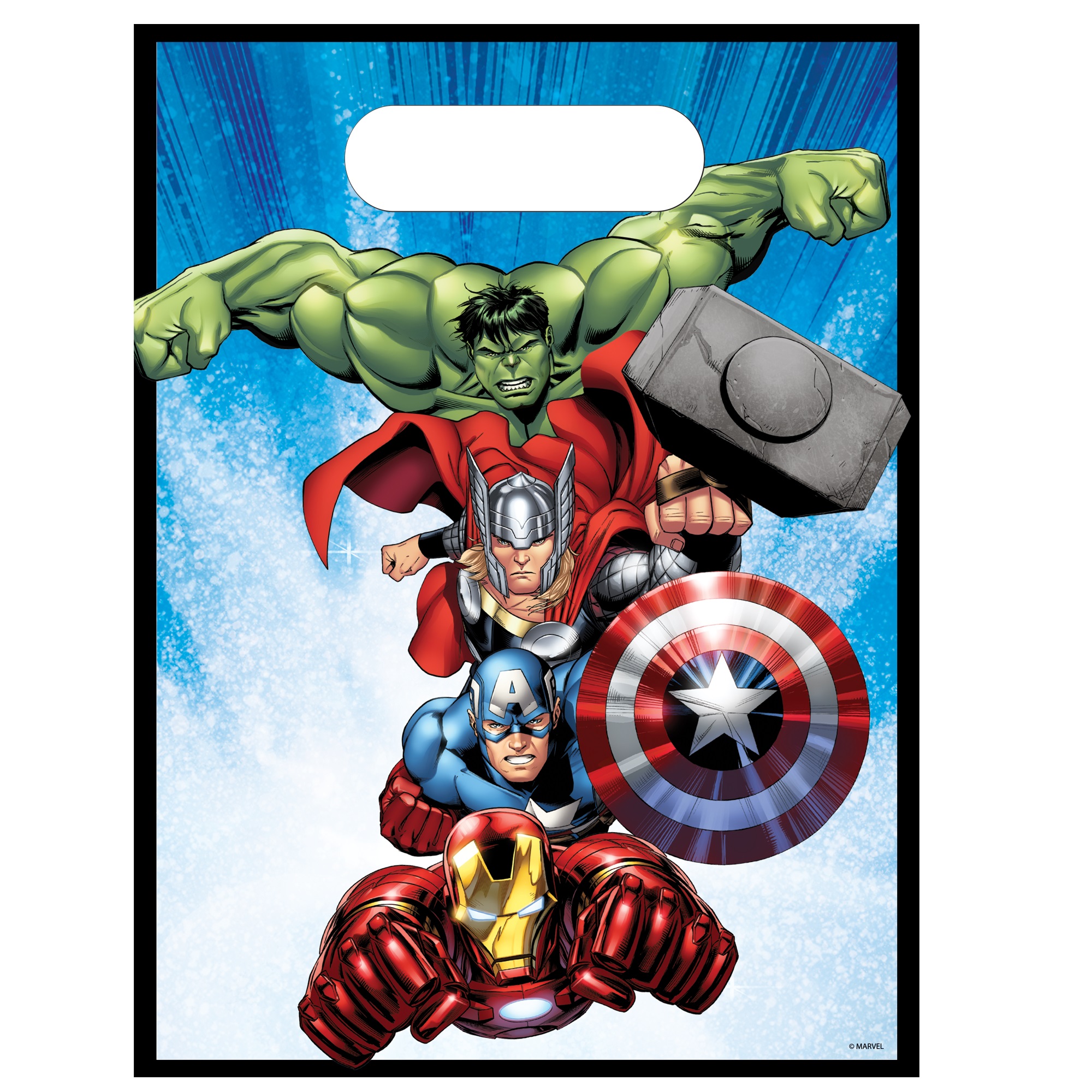 Igelitová taška o rozměrech 16,5 cm x 23 cm s motivem Avengers.