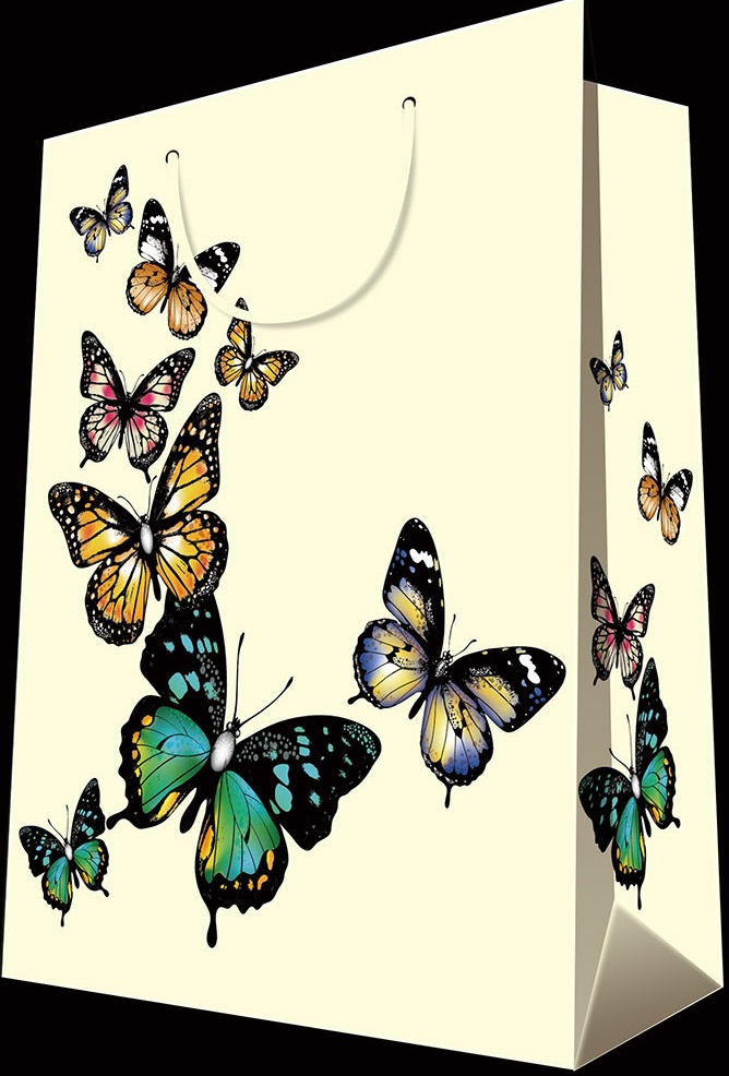 Kvalitní, papírová, dárková taška s motivem motýlků.
