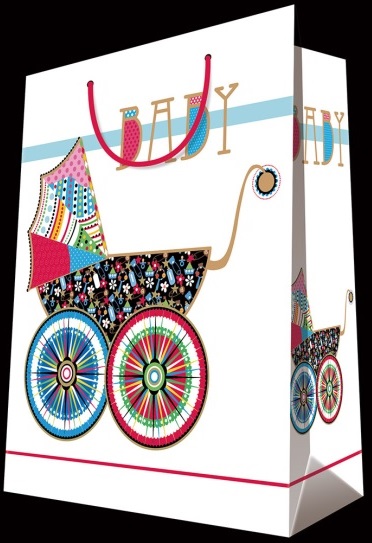 Kvalitní, papírová, dárková taška s motivem kočárku.