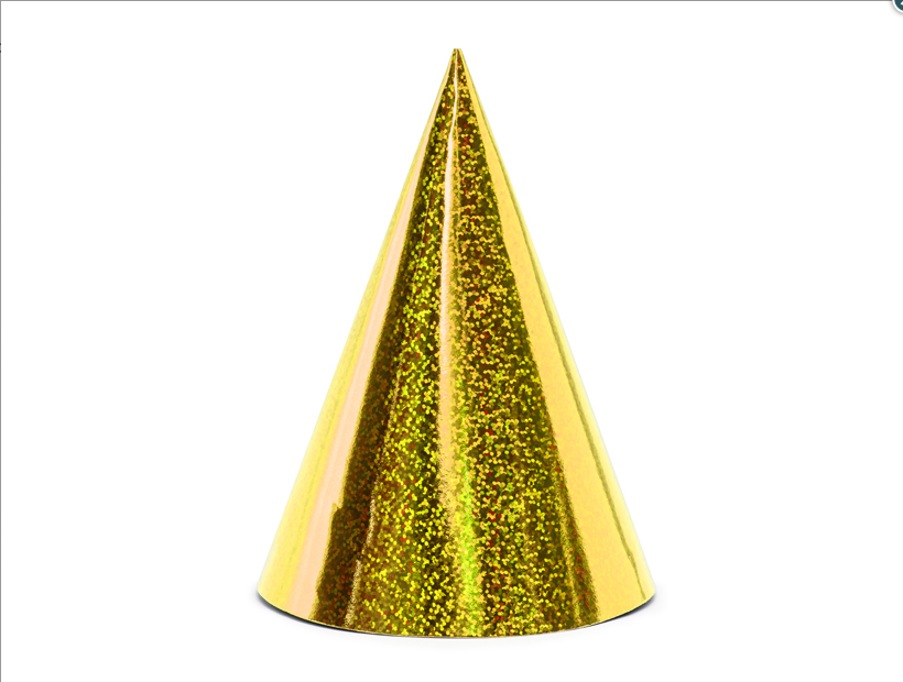 Lesklé papírové čepičky ve zlaté barvě.