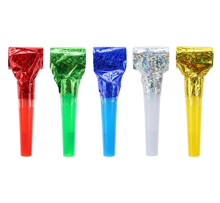 Barevné frkačky jsou vyrobeny z fólie a mají plastový náustek.