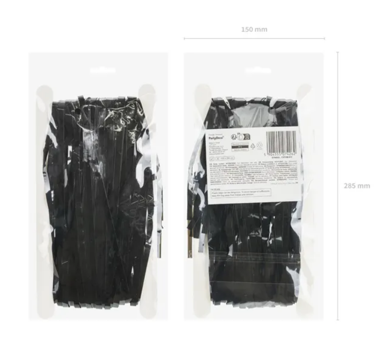 Lesklý party závěs v černé barvě, šířka cca 100cm, délka cca 2 metry.