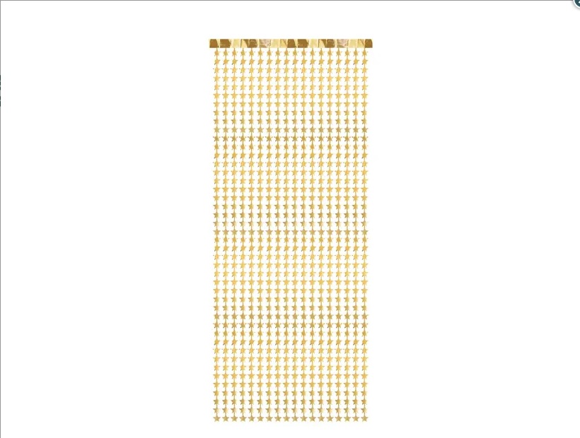 Lesklý party závěs ve zlaté barvě, šířka cca 100cm, délka cca 245cm.