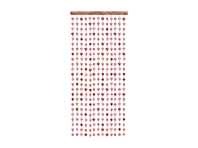 Lesklý party závěs v rosegold barvě ve tvaru srdíček, šířka cca 100cm, délka cca 245 cm.