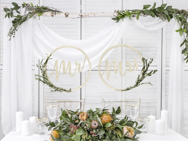 Dřevěná závěsná dekorace Mr. a Mrs.