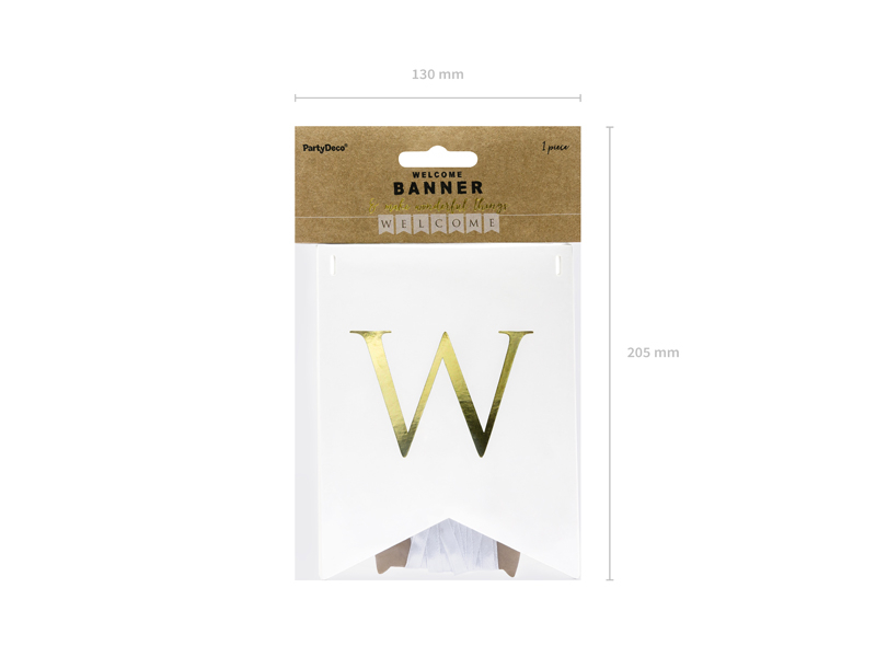 Baner se zlatým nápisem "Welcome".