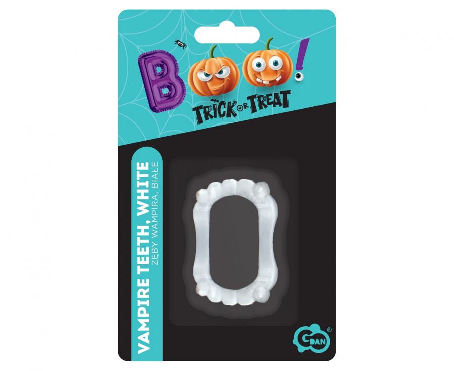 Bílé zuby imitující upíří čelist.