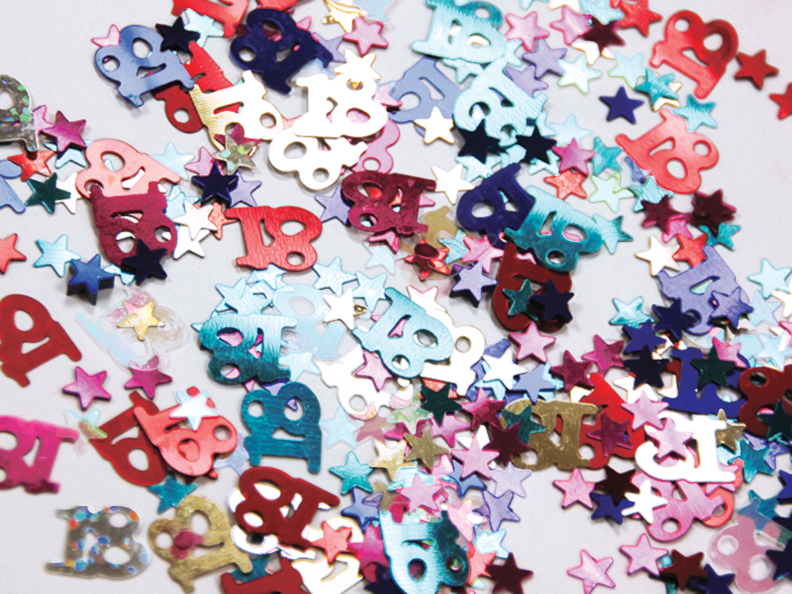 Konfety ve tvaru hvězd a čísla 18 v barevném mixu skvěle oživí Vaši oslavu.