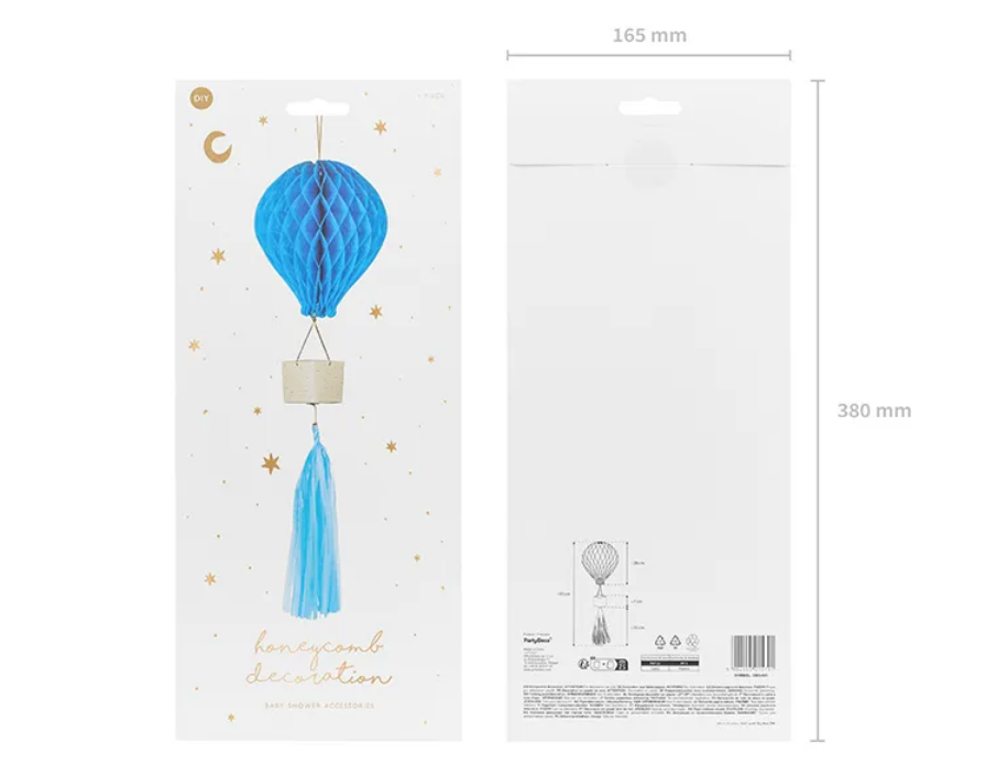 Dekorativní papírový horkovzdušný balón v modré barvě.