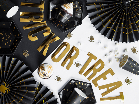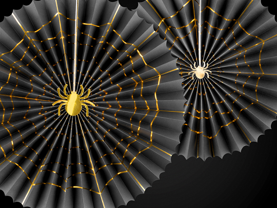 Dekorační rozety v černé barvě s potiskem zlaté pavučiny a pavouka.