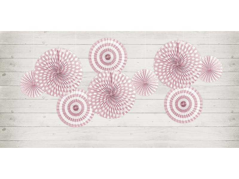 Dekorační rozety v pastelovém mixu růžových barev v různých designech.