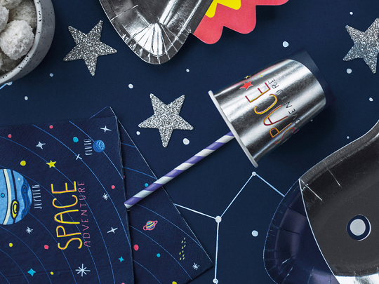 PDSPP5M-018 | Brčka papírová - stříbrné hvězdy, 10ks |