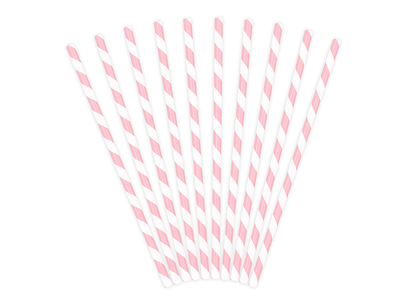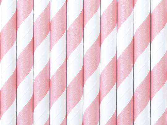 Papírová brčka se světle růžovobílými proužky, délka cca 19.5cm.
